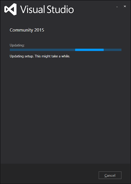 5. You will see a screen to update 'Visual Studio Community 2015', Click on Update.